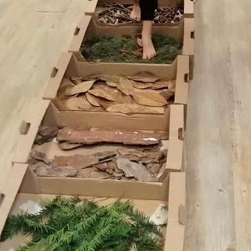 Storytelling & collaborative mark makig using clays, natural pigments, foraged materials, and our body movement.